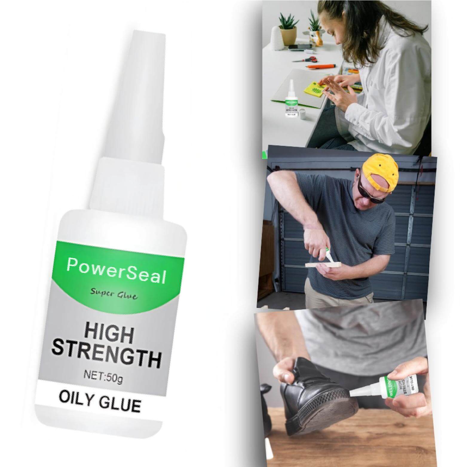 PowerSeal™ besitzt eine einzigartige ölbasierte Formel, die ihn perfekt für Leder, Stoffe und andere weiche Materialien macht, bei denen normaler Sekundenkleber bricht. Gleichzeitig ist er so kraftvoll, dass er auch schwere und harte Materialien mühelos verbindet.
